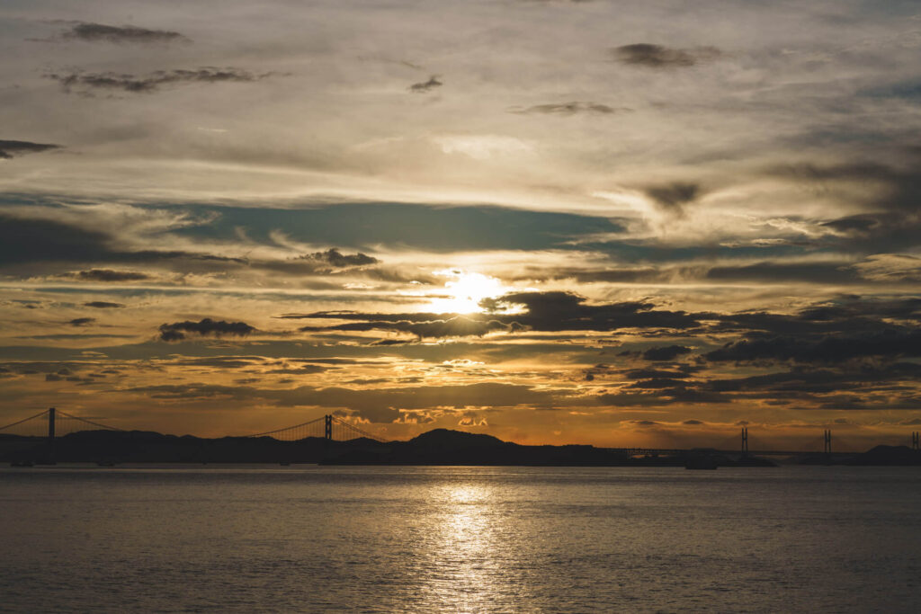 夕日と番の州臨海工業団地を背景に、車を撮影することができました。