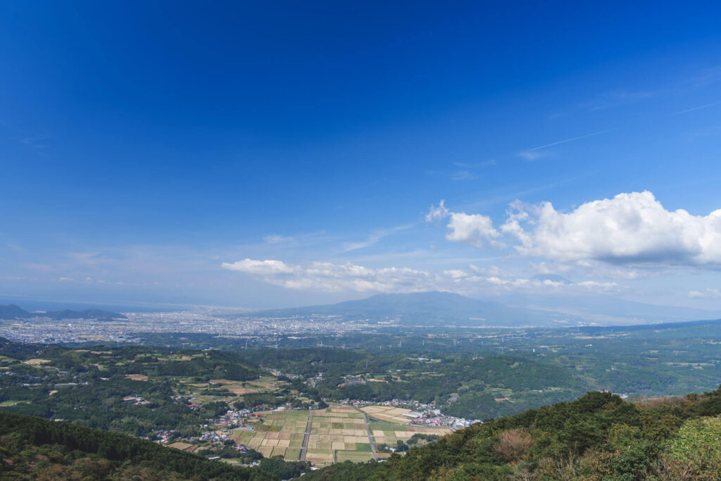 西には駿河するが湾や田方たがた平野の街並みのほか、天候が良ければ富士山も観ることができます。
