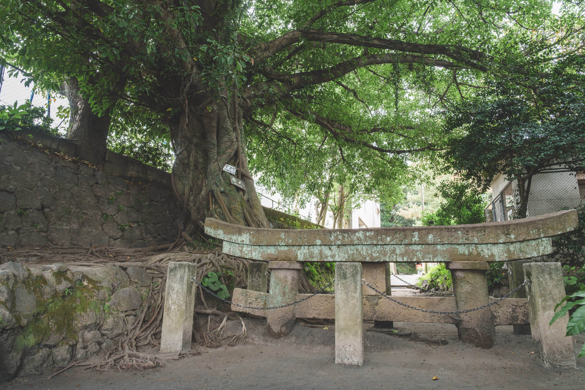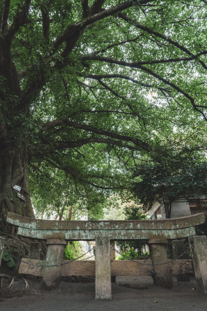 鳥居の脇に生えている巨木は、アコウの木。