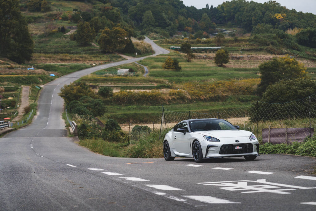車が正面を向いている場合でも、奥に続く道があればそれっぽい写真になります。
