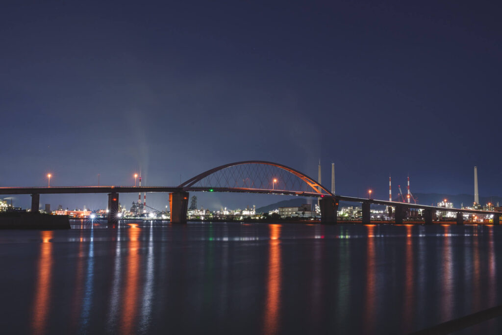 工場夜景の聖地としても知られており、一帯に煌く無数の光が幻想的な雰囲気を醸し出してくれます。