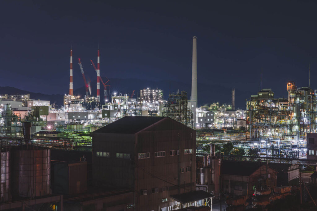 山口県周南しゅうなん市の沿岸部に広がる、全国有数の巨大コンビナート。