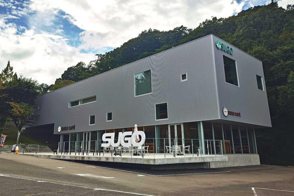スポーツランドSUGOのメインゲート手前の駐車場内にあり、モータースポーツファンやライダーの集いの場となっているようです。